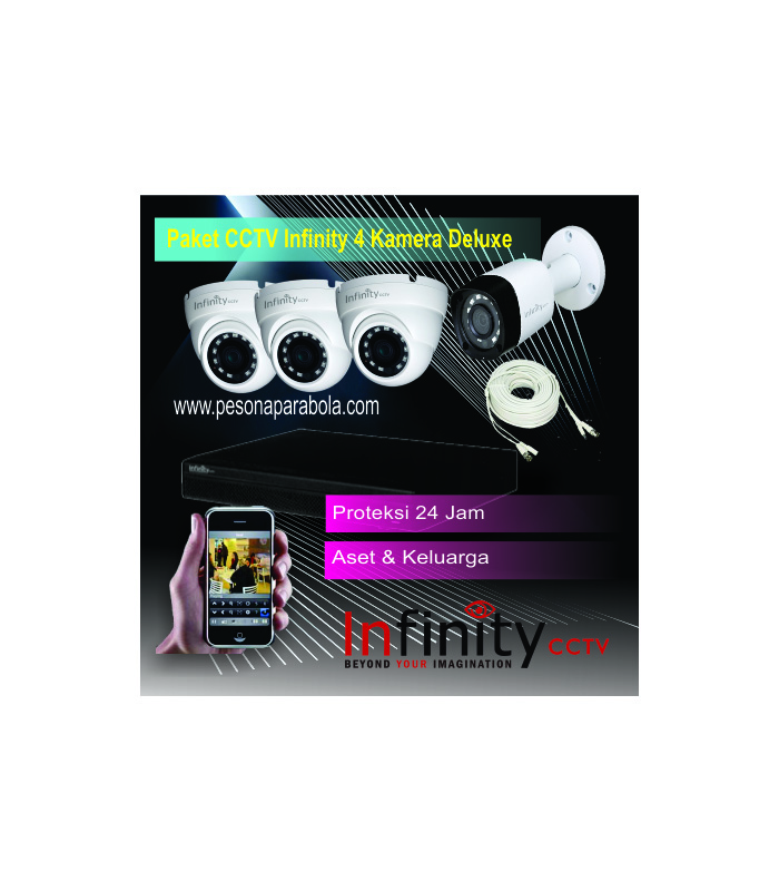 Paket CCTV infinity 4 kamera Deluxe, aman dan dengan harga terjangkau. Infinity CCTV adalah Brand CCTV profesional dalam penelitian dan pengembangan teknologi video di Indonesia khususnya dibidang keamanan dan kamera pengawas. Infinity CCTV memiliki berbagai produksi unggulan seperti CCTV Analog, HDTVI dan IP Kamera.